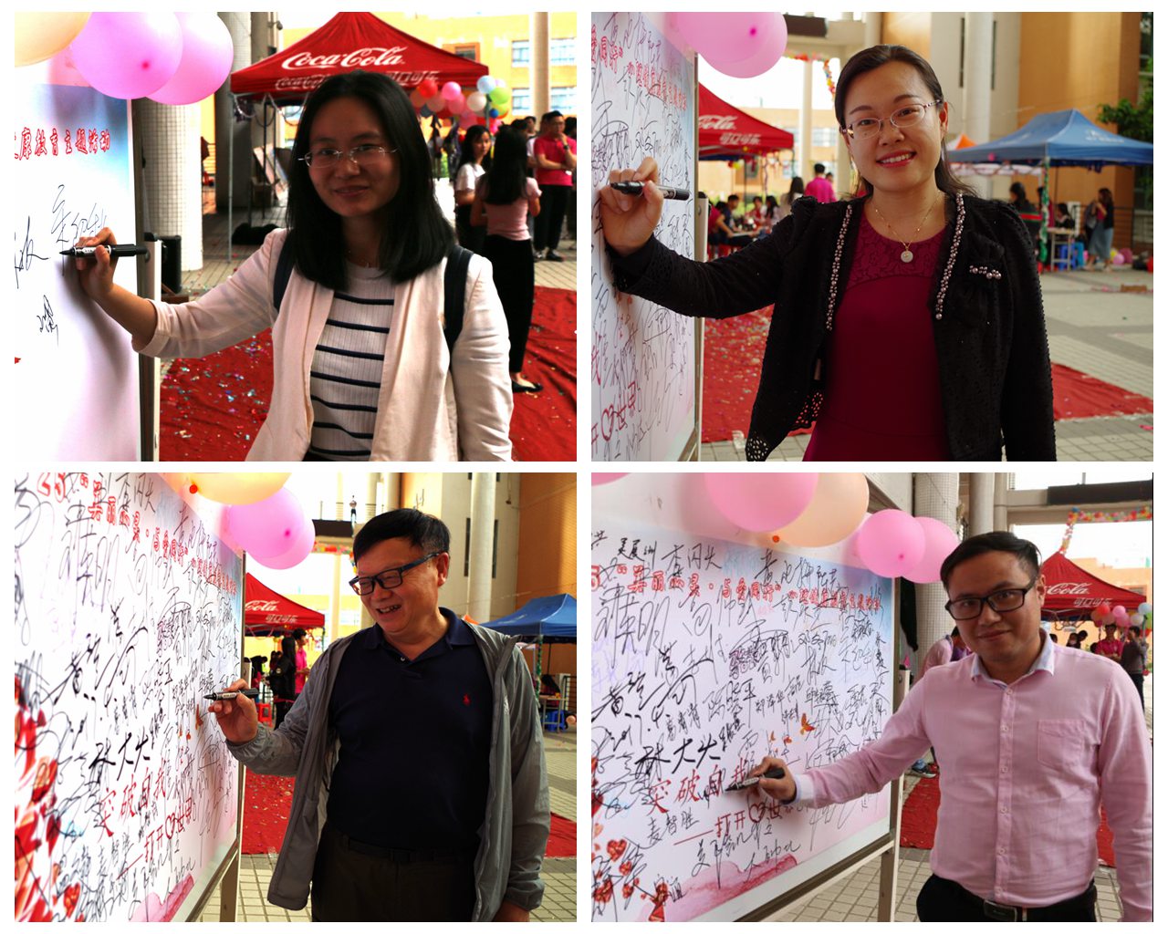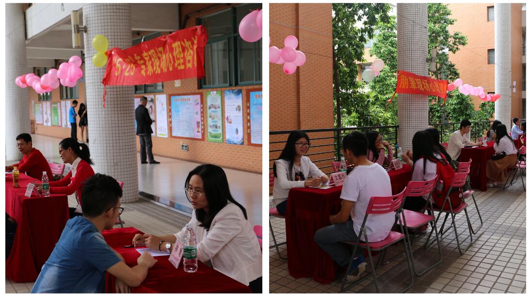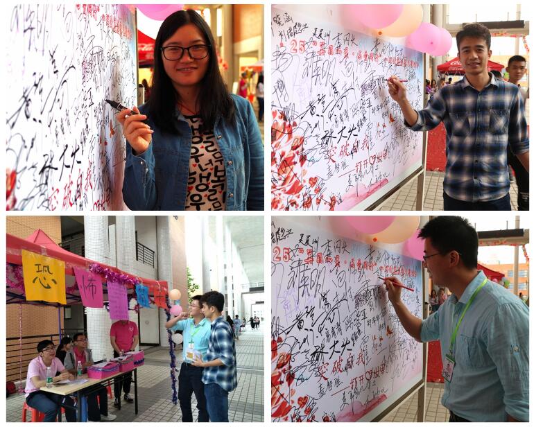 青春活泼的开场舞、甜美动人的女声小合唱拉开了游园会的序幕。本次宣传教育活动分心理游园会、专家现场心理咨询、朋辈现场心理辅导、心理知识板报展览等四大板块:精心设置的班级心理委员调研活动;悉心准备的创新心理游戏:“冲锋风火轮”考验的是小集体的团队协作能力,“眼见不为实”则让体验其中的同学了解人体感知觉的奇妙魅力,管理学院心情驿站的“爱的信号弹”活动,通过图片展、互动通关的方式宣扬了生活中的种种大爱,让观看的同学感受爱、表达爱。另外,心理测试等以及一幅幅精美的心理知识板报和心理趣图大大吸引了学生们的眼球和参与的积极性,向广大师生宣传了心理知识。游园活动还设置了主题签名、心愿墙环节,密密麻麻地签满了前来参与本届活动的各位领导、辅导员和学子们的名字和心愿。
