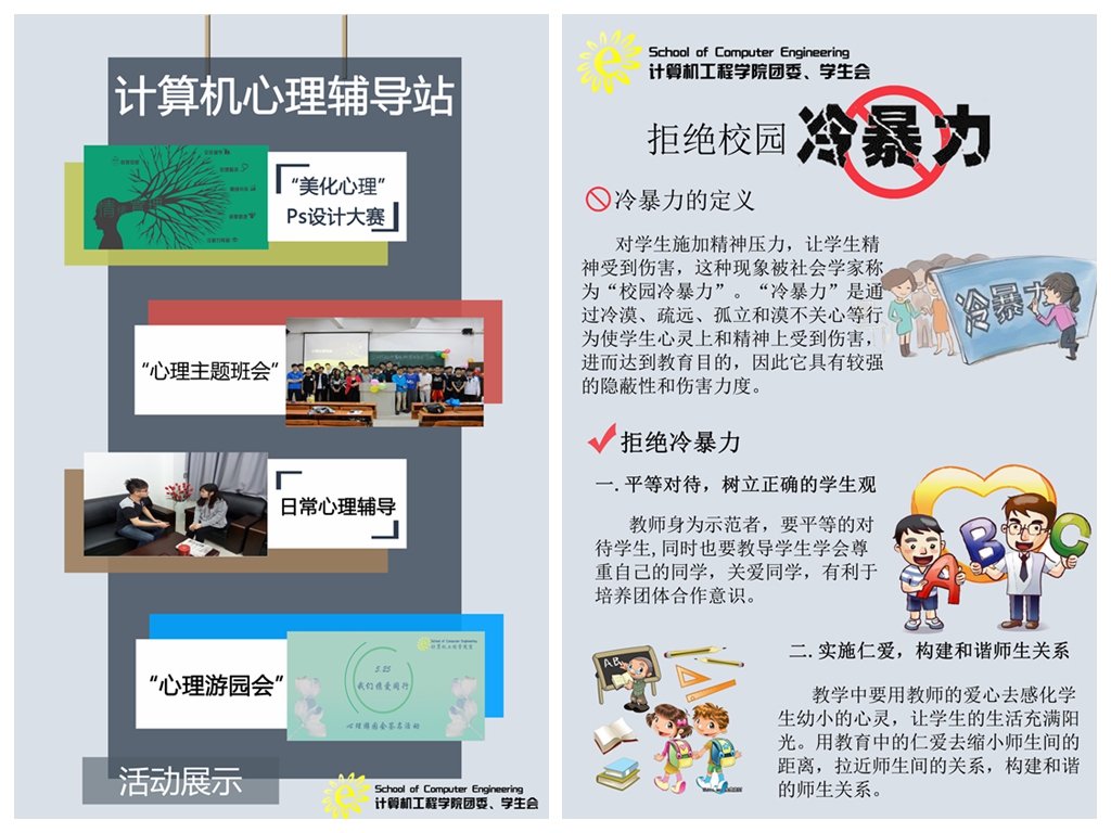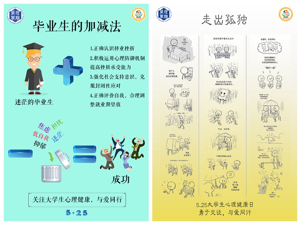 本网讯(记者 鲁丹凤)阳光灿烂的五月,风雨长廊墙面上一张张海报犹如“姹紫嫣红开遍”。这是伟德国际1946举办的首届各二级学院心理板报优秀作品,海报中有的用漫画形式展现了学生走向自信的心理历程,有的介绍情绪管理的心理卫生知识,有的则展示了二级心理辅导站的工作成效,多彩绚烂的配图、丰富有趣的内容,吸引了众多师生驻足观看。