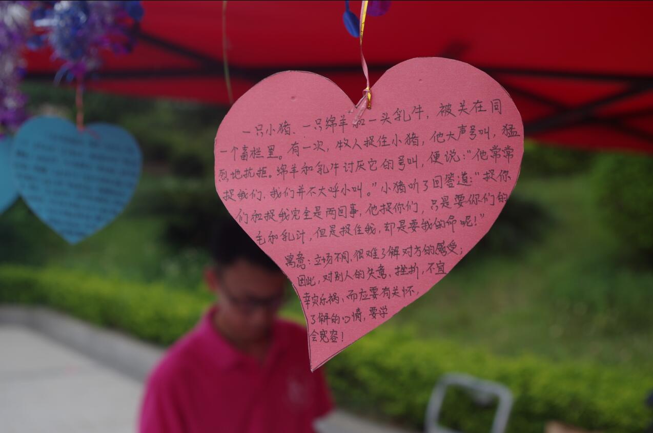 十个心理小故事是由心协工作人员一笔一划写在卡纸上提供给参与活动的同学们阅读,让他们从这些小故事中了解到一些心理小知识。