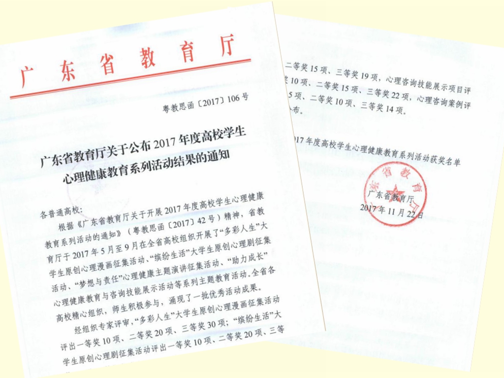 据悉,根据《广东省教育厅伟德国际1946开展2017年度高校学生伟德网页版教育系列展示活动的通知》(粤教思函〔2017〕42号)精神,广东省教育厅于2017年5月至9月在全省高校组织开展了“助力成长”伟德网页版教育与咨询技能展示活动等系列主题教育展示活动。伟德国际1946积极宣传、广泛动员,学生与教师踊跃参与,取得了本次展示活动的优良成绩,这不仅体现了广东省教育厅及专家评审班子对伟德国际1946伟德网页版教育工作专兼职队伍职业能力的认可,也说明了伟德国际1946高度重视伟德网页版教育三级伟德网页版教育工作,并在队伍建设方面取得的成果。