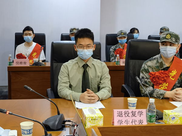 随后,退役复学学生代表温德城向大家分享了自己的从军经历,并为战友送上临行祝福。“参军报国,一次蜕变,一生受用。”温德城说,“以前是我们,今后是你们,我们共同的名字是——人民子弟兵,祝贺你们即将成为最可爱的人。”