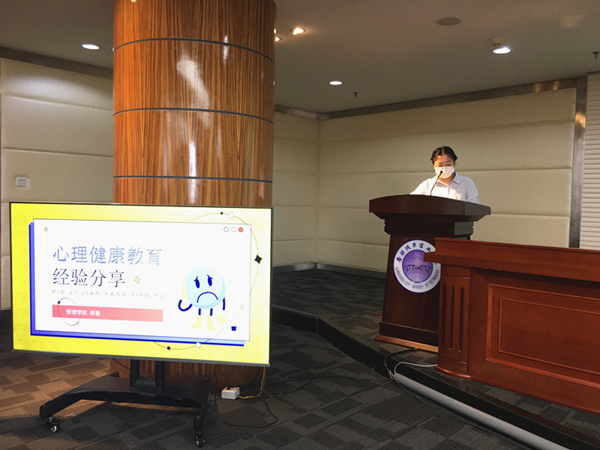 会议邀请了管理学院辅导员胡春老师进行了心理访谈工作经验分享,胡老师从两个学生案例入手,详细的分享了她在处理学生心理问题时遇到的情况以及工作难点、工作经验以及心得体会等,胡老师认为对学生基本信息的获取分析、润物细无声的关怀以及平等尊重的态度是自己获得学生信赖的法宝,同时,在工作中的获得感、帮助学生从一个差的状态调整到一个积极的状态,亲身感受学生的成长与进步是她最大的成就感和幸福感。