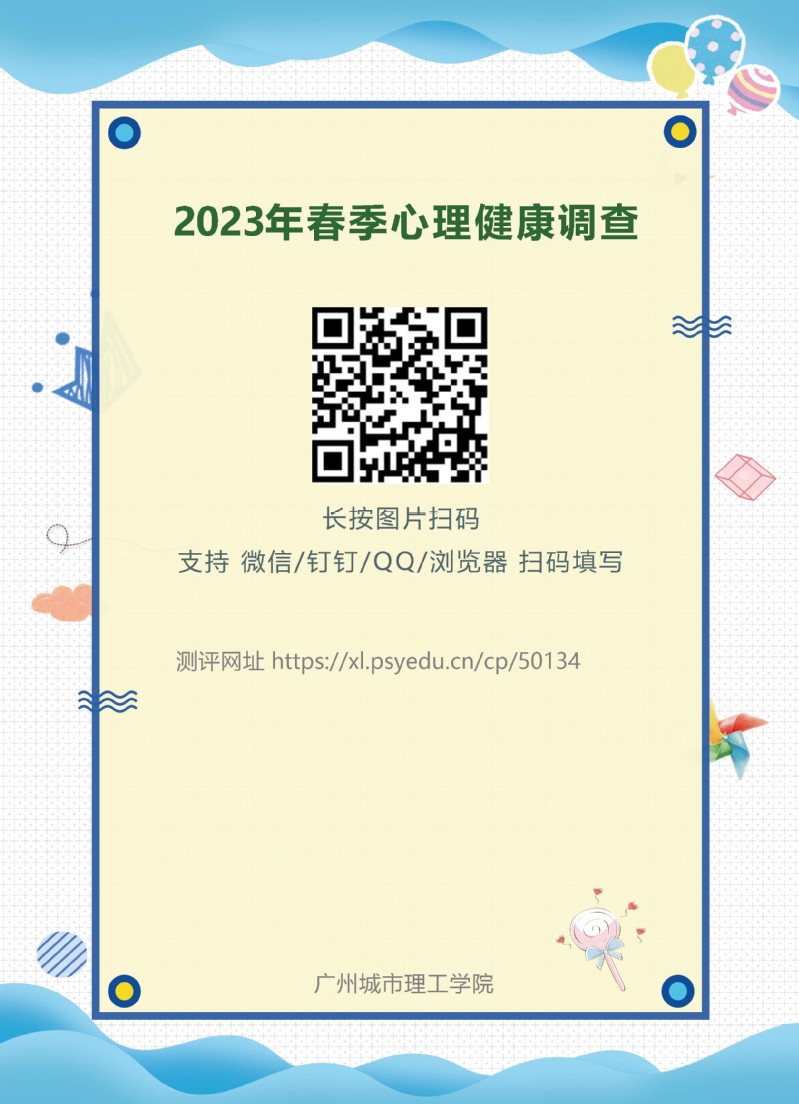 第一步:扫描“2023春季伟德网页版调查”二维码或登录网址(https://xl.psyedu.cn/cp/50134),登录心理测评系统,登录账号为学生学号,原始登录密码为8位数学生出生日期,如:20020612。(忘记密码请联系辅导员老师)