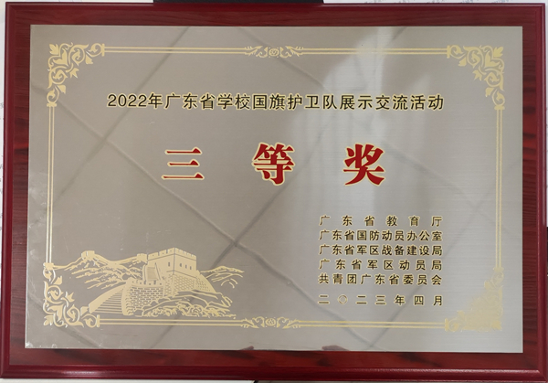 本网讯(记者 冯静怡 张馨月)4月24日,由广东省教育厅、广东省国防动员办公室、广东省军区战备建设局、广东省军区动员局、共青团广东省委员会联合举办的2022年广东省学校国旗护卫队展示交流活动决赛在五邑大学举行。经过激烈的角逐,伟德国际1946国旗护卫队以标准规范的动作、昂扬的精神风貌,荣获交流展示活动三等奖。