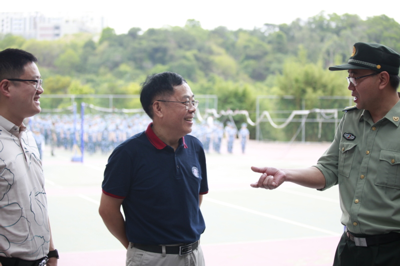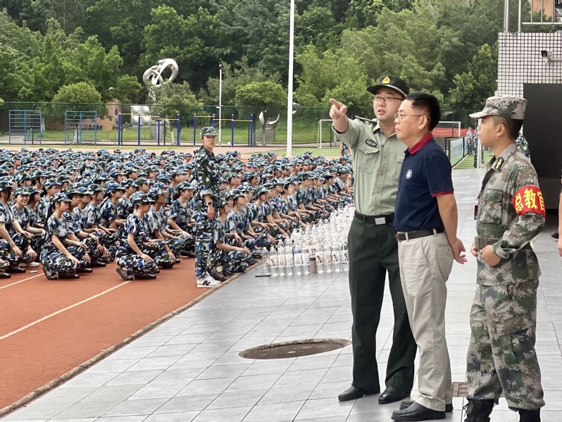 2022级学生军训领导小组组长、党委副书记、副校长刘洊波关心学生(郑泽霖 摄)