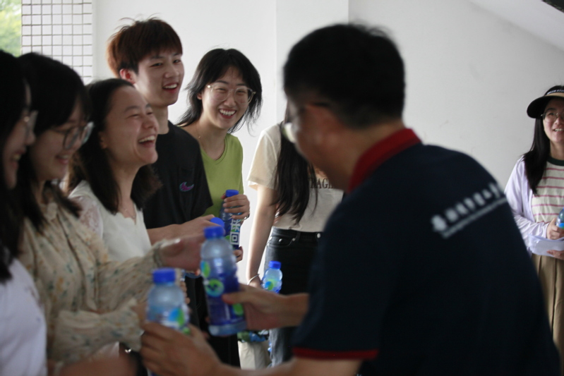 2022级学生军训领导小组组长、党委副书记、副校长刘洊波为大家送水(郑泽霖 摄)