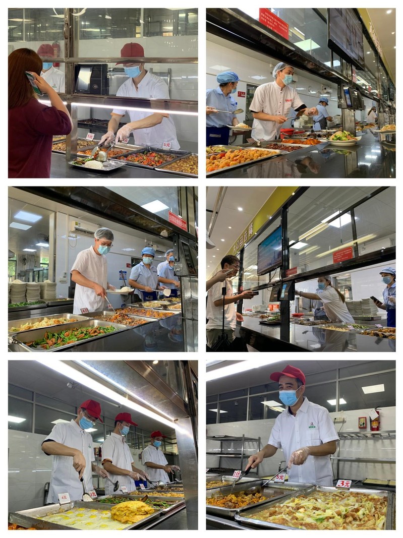 机械工程学院/机器人工程学院王诗音老师、电气工程学院雷光宇老师、计算机工程学院/大数据学院肖汉枝老师、经济学院张全胜老师、珠宝学院李运成老师、土木工程学院陈穗君老师等六位辅导员“持证上岗”,深入各食堂,为学生打饭。活动中,有学生发现了自己的辅导员,非常惊喜,接过辅导员打的饭菜,大家脸上都洋溢着欢乐的笑容,欢乐温馨的氛围立刻充满了整个食堂。王诗音老师表示:“通过此次节前活动,让同学们感受到了辅导员从各方面对学生的关怀,辛苦但收获颇丰。”肖汉枝老师表示:“此次活动,拉近了我与学生之间的距离,看到他们脸上洋溢的笑容,虽然辛苦却也快乐。”