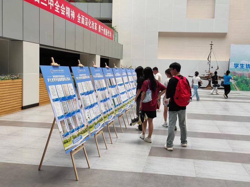 同学们在行政楼大厅展区观展(赵安欣 摄)
