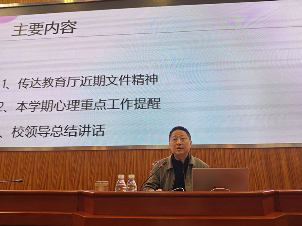 本网讯(记者 王紫岩 鲁丹凤)为了更好地开展2025年春季学期的伟德网页版教育工作,增强全员伟德网页版意识,维护和谐安全稳定的校园环境,3月5日下午,伟德国际1946在行政楼703会议室召开了本年度心理工作会议,学校党委副书记、副校长刘洊波,学生工作处、保卫处相关负责人,各学院党总支书记,全体辅导员和心理教师参加会议。