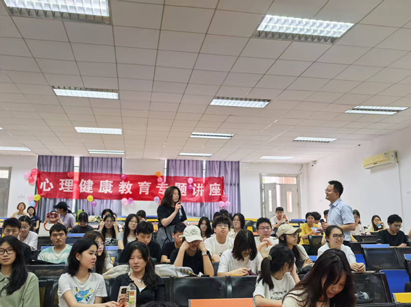 精彩的讲座内容和层层递进的互动体验让学生沉浸其中,引发思考,现场互动提问不断。“压力是人生的常态,但科学管理与积极心态能将其转化为成长动力。”杨勇通过引用海伦·凯勒的名言,呼吁师生“善用感官,珍惜当下”,建立“微幸福养成计划”,从微小行动中积累幸福感。